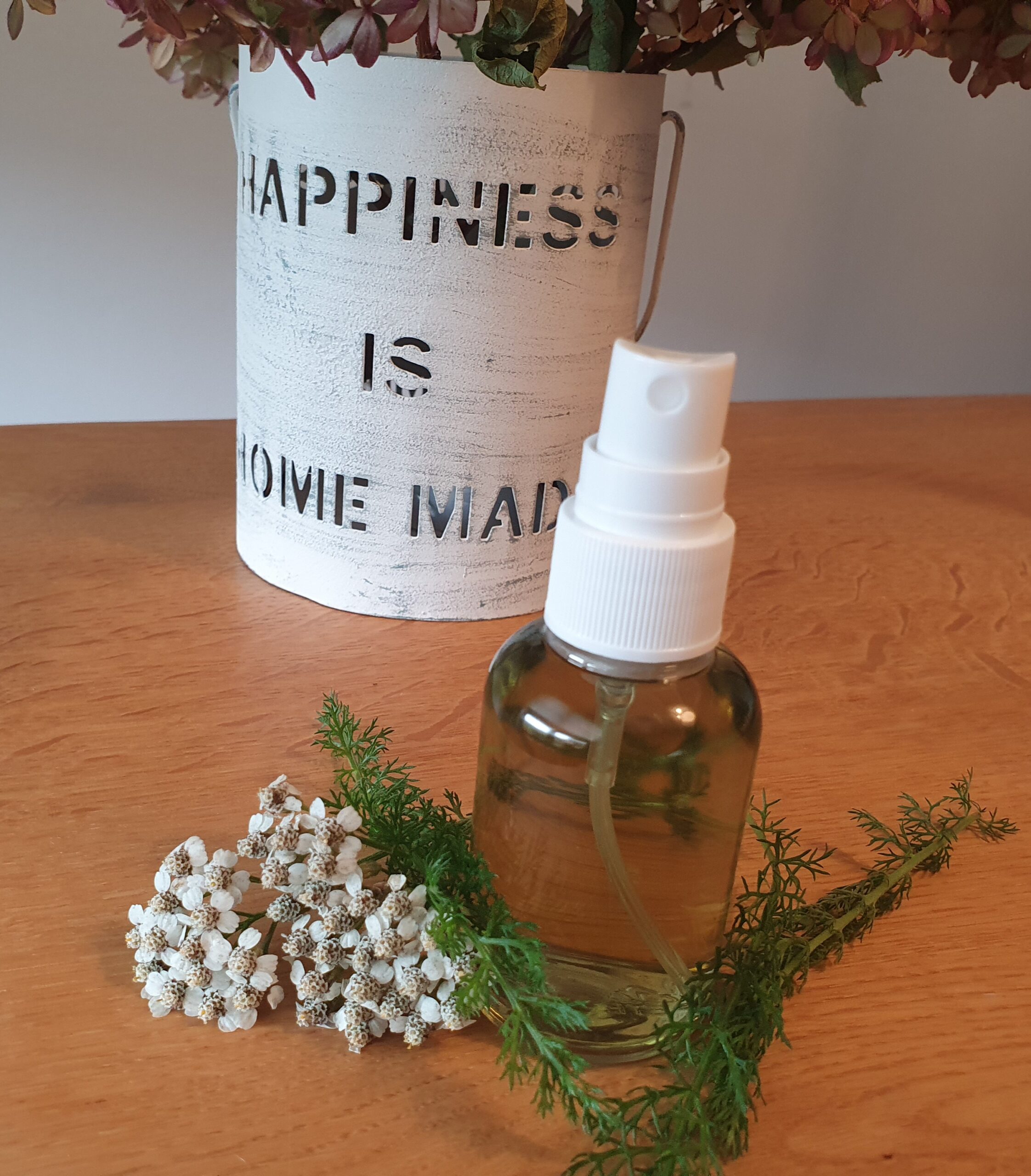 => Sproei dit duizendbladwater zachtjes op je huid of dep met een watje hiermee op je huid.